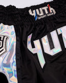 -Classic Muay Thai Cut -Worn By Professional Muay Thai Fighters -Made With Long Lasting Microfibre Material -Colors Available: Black/Silver