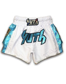 -Classic Muay Thai Cut -Worn By Professional Muay Thai Fighters -Made With Long Lasting Microfibre Material -Colors Available: White/Blue